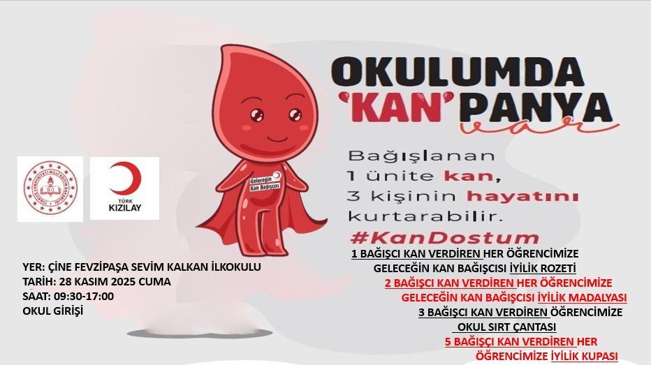 Aydın’ın Çine ilçesinde Fevzi Paşa Sevim Kalkan İlkokulu tarafından Türk Kızılay’ına kan bağışı etkinliği düzenlendi. Okul Müdürü Memduh Ceylan öncülüğünde gerçekleştirilen etkinlikte öğrenciler, veliler ve öğretmenler ... haberin devamı için tıklayın